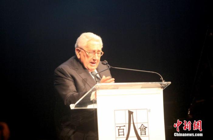 资料图:美国前国务卿基辛格出席在纽约举行的美国百人会成立25周年颁奖晚宴并发表演讲。中新社发 阮煜琳 摄