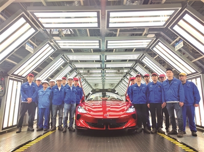 11月30日晚,随着上汽宁德基地第867274台整车下线(右图),标志着基地11月量产达40010台,创基地投产以来月产量新高。