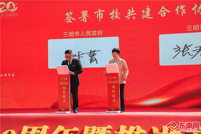 三明市人民政府与三明学院签署共建合作协议。三明学院供图