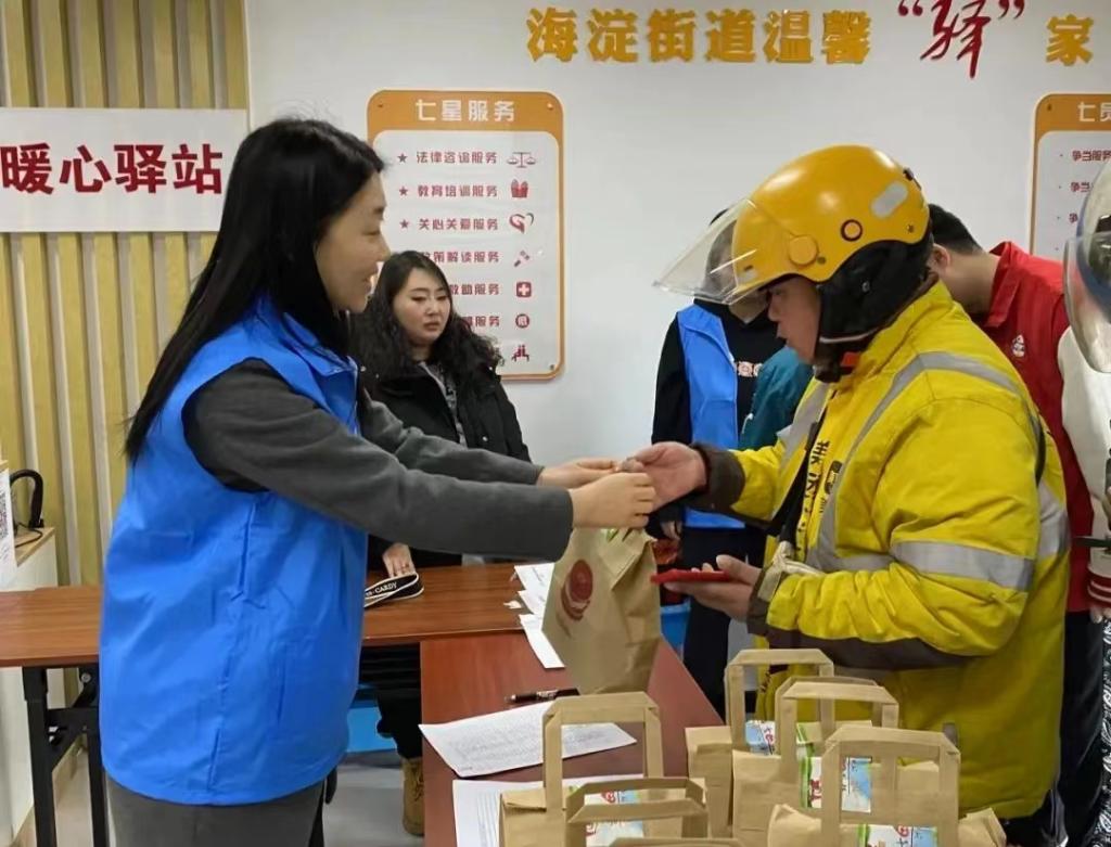 在北京市海淀区海淀街道,“温馨驿家”13日开展了“小哥加油站,活力‘心’早餐”爱心活动,街道志愿者们将早餐提前打包好,发放爱心早餐50余份。“一早忙起来没时间吃饭,没想到在这还能吃到早餐,喝到热腾腾的咖啡,特别感动。”一位外卖小哥说。