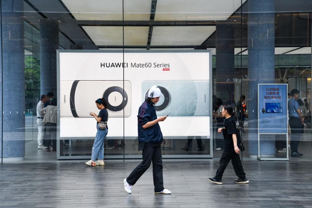 2023年9月11日,行人从华为深圳旗舰店前走过。新华社记者 梁旭 摄
