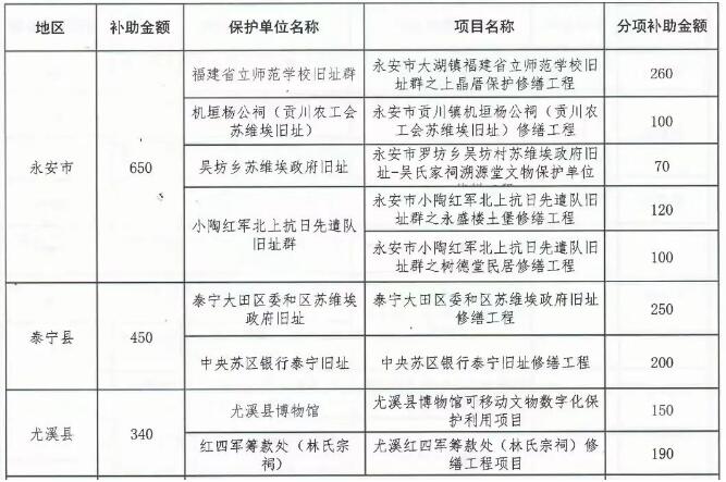 近日,福建省财政厅、福建省文化和旅游厅提前下达2024年国家文物保护资金,全省共计14730万元。用于国家文物保护项目的文物维修保护、文物安防、消防及防雷等所需支出。三明16个文物保护项目获国家资金支持,总计2630万元。 上一篇 下一篇