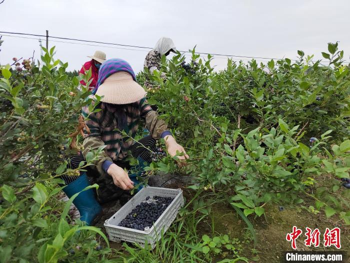 吉林靖宇农民在采收蓝莓。(资料图)靖宇相关部门供图