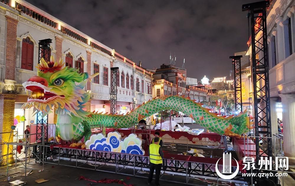 龙年春节,泉州以“龙”为线,在古城内开展闽南美好生活嘉年华“十龙九子”生肖艺术装置展览。作为“十龙九子”生肖艺术装置之一,连日来,位于泉州中山路金鱼巷泮宫口的大青龙“龙鲤鲤”正抓紧安装调试,虽未正式亮灯,但已吸引许多市民游客围观拍照。“龙鲤鲤”头簪刺桐花,团坐于祥云之上,龙尾由金鱼巷延伸至墙体,呈现出穿墙而入的效果,十分壮观,造型创意融入非遗文化、春节文化、传统龙灯文化、闽南建筑营造技艺、古城在地人文等元素。(融媒体记者张素萍 王柏峰 文/图) 上一篇 下一篇