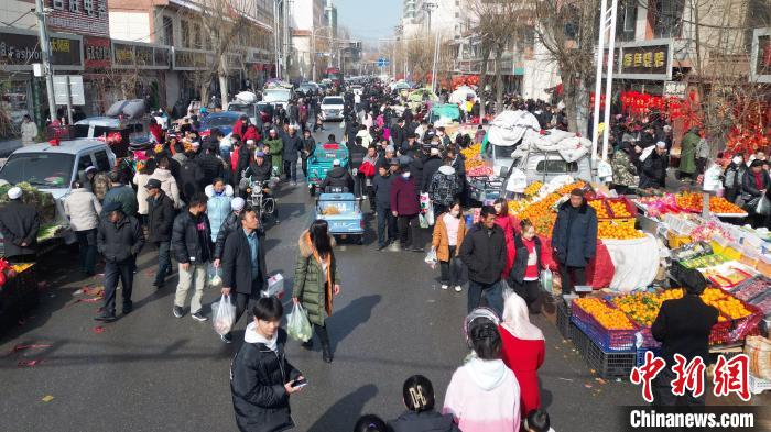 2月8日,民众在积石山县吹麻滩镇的集市上购买年货,迎接中国农历新年的到来。九美旦增 摄