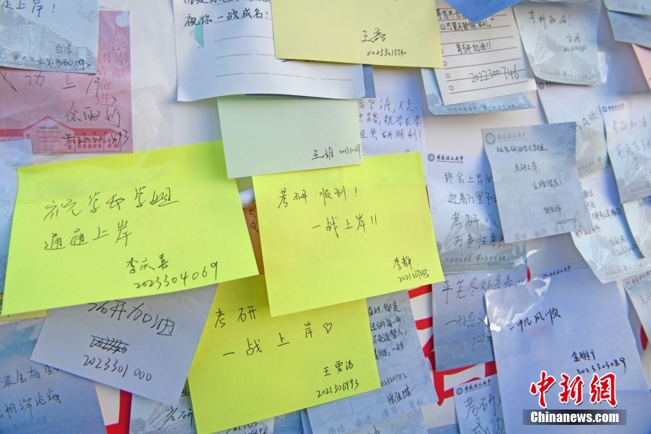 2024年研考考生在心愿墙上写下考研成功的心愿。陈彬 摄