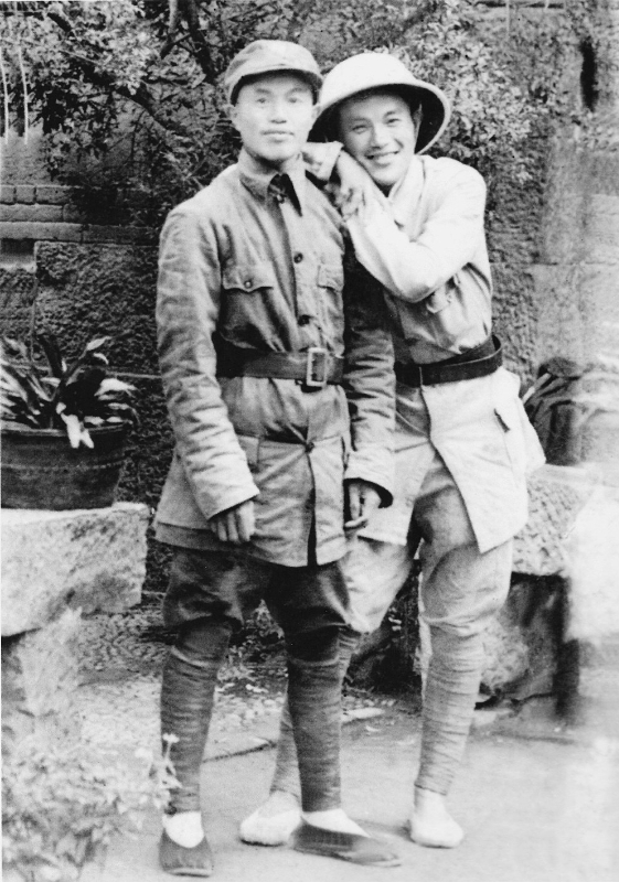 1944年7月,皮定均(左)与张力雄(右)在太行七分区驻地河南林县上庄合影。