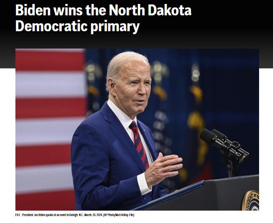 据报道,北达科他州30日宣布了这一初选结果,并称此次计票主要通过邮寄方式完成。据报道,民主党从2月开始向选民分发选票。