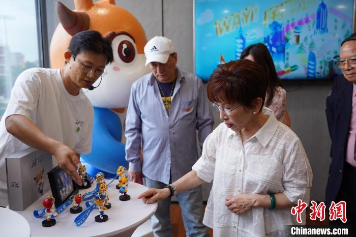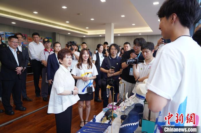 洪秀柱一行21日下午前往深圳市中山公园棒球场会议室,参观了数名在深创业的台湾青年的成果展示,了解他们的创业情况,并与他们交谈。