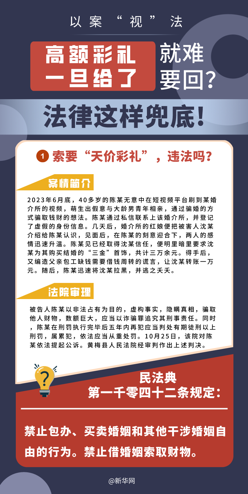 “五一”长假期间,各地迎来了婚礼高峰期,“彩礼”话题,尤其农村高额彩礼现象备受关注。破解高价彩礼,在解决争议的层面,司法尽了最大努力兜底。本期《以案“视”法》针对涉“高额彩礼”纠纷,带大家学习相关法律知识。文字来源:根据公开报道综合策划制作:卢俊宇终审:陈竞超 上一篇 下一篇