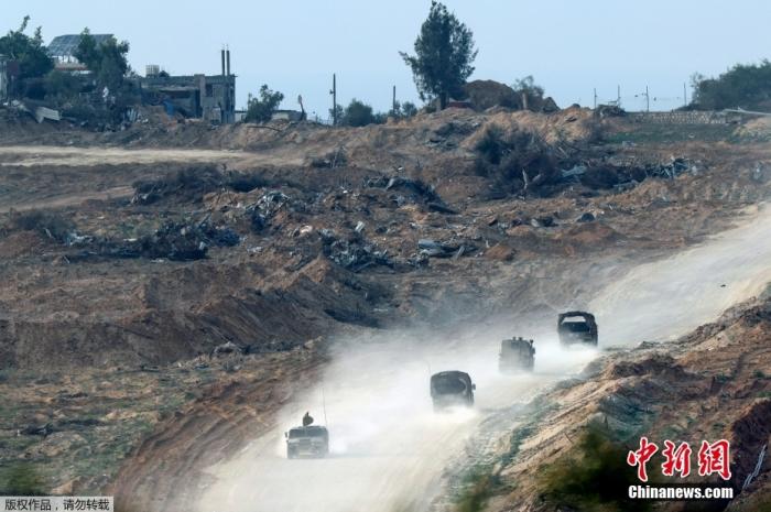 资料图:当地时间2023年12月27日,以色列军车驶过加沙地带北部。