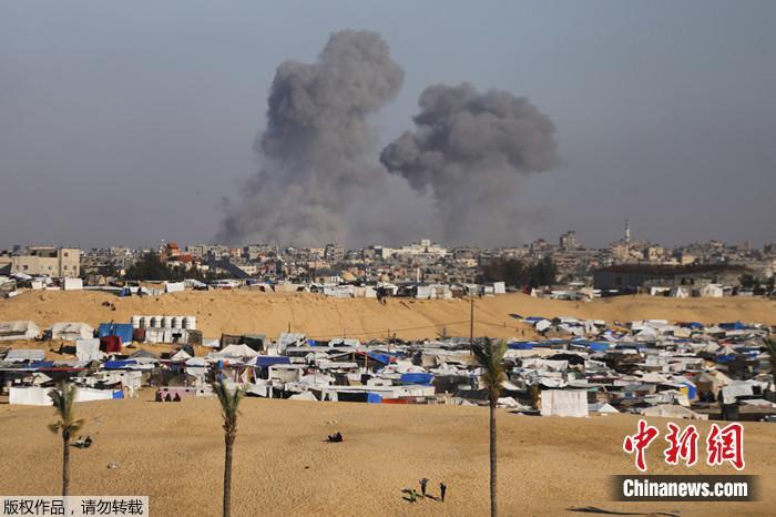 资料图:当地时间5月6日,以色列空袭加沙地带拉法以东。