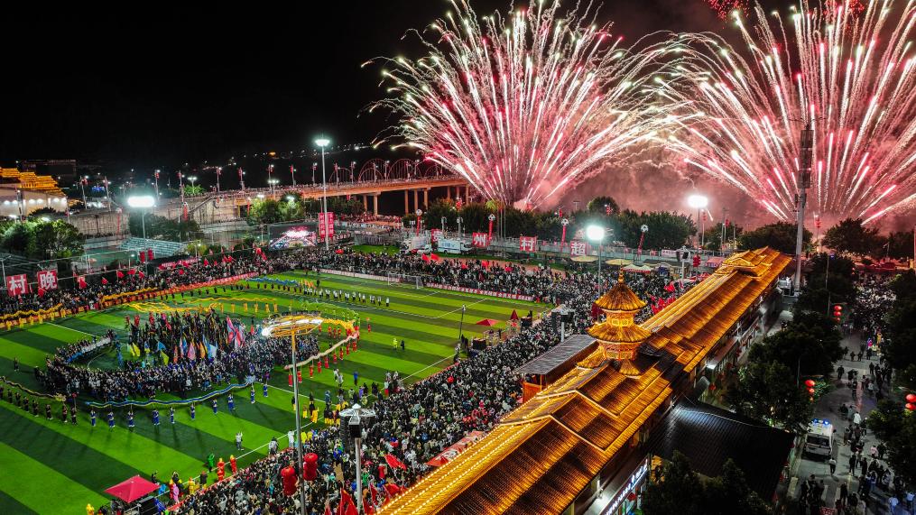 辽宁东港草莓足球队带来唢呐表演,中山大学凤庆滇红茶足球队带来芦笙舞,毕节南山羊肉粉足球队带来彝族舞蹈……“村超”聚力汇智,推动共建共享。