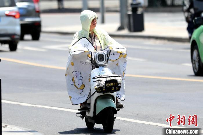 6月13日,陕西西安,市民遮阳出行。当日,西安市气象台继续发布高温橙色预警信号,预计未来24小时西安及周边县区日最高气温将升至38至40℃,部分区域可达41℃以上。 张远 摄