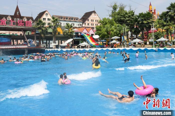 重庆迎高温天气,市民戏水享清凉。杨孝永 摄