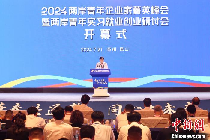 7月21日,2024两岸青年企业家菁英峰会暨两岸青年实习就业创业研讨会开幕,刘兆玄致辞。 中新社记者 泱波 摄