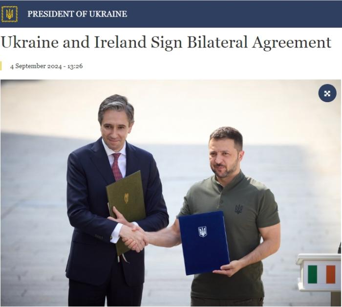 中新网9月4日电 综合报道,当地时间9月4日,乌克兰总统府网站发布消息称,乌克兰总统泽连斯基和爱尔兰总理西蒙·哈里斯签署了两国双边安全协议。图片来源:乌克兰总统府网站截图 消息称,自乌克兰危机爆发以来,爱尔兰向乌克兰提供了总额约为3.8亿欧元的援助。 《基辅独立报》报道称,作为协议的一部分,爱尔兰承诺向乌克兰提供1.28亿欧元用于非致命性武器援助,以及至少4000万欧元的人道主义援助。 上一篇 下一篇