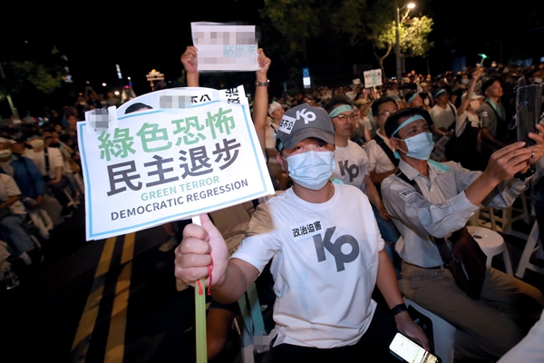 据报道,民众党8日晚间6点半在台立法机构外举行“集结!为台湾的‘司法’正义站出来”晚会。不到5时,“小草”就陆续聚集,他们头上绑着代表民众党的蓝绿色丝带,手举“为‘司法’公义站出来”标语,纷纷表示不相信柯文哲贪污,要求拿出证据。全场高呼“赖清德放人”“柯文哲回来”。民众党方面称有2万人到场。