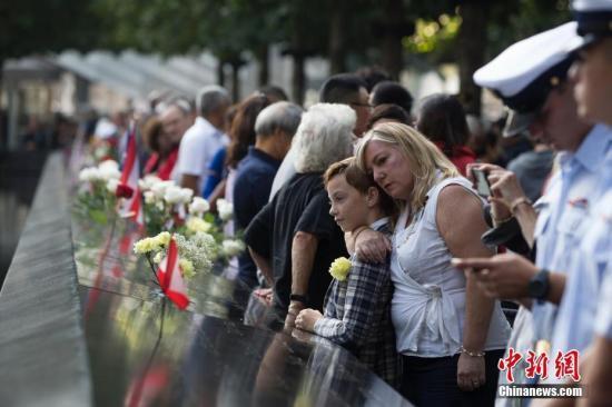 资料图:当地时间2019年9月11日,民众在纽约世贸遗址前寄哀思。中新社记者 廖攀 摄