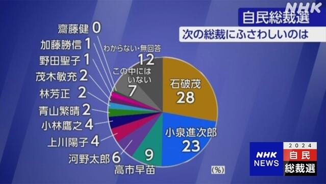 多家日本民调也显示,石破茂、小泉进次郎、高市早苗被视为新总裁的热门人选。
