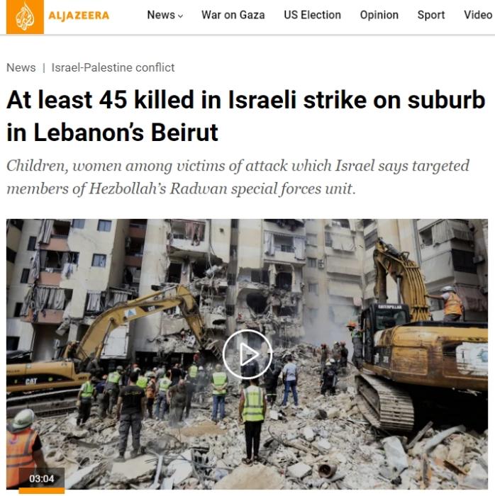 中新网9月23日电 据卡塔尔半岛新闻网报道,当地时间22日,黎巴嫩卫生部门表示,以色列在该国首都贝鲁特南郊发动的空袭,已造成45人死亡。