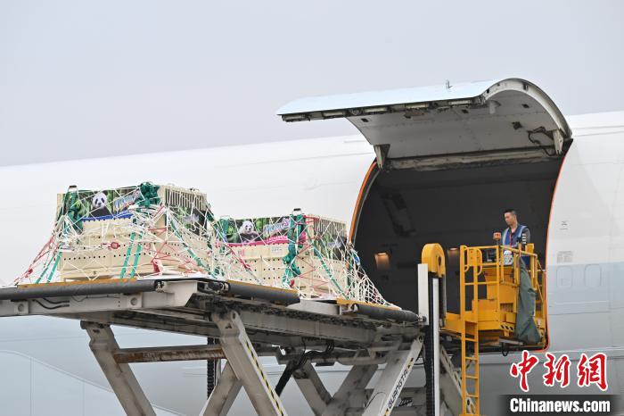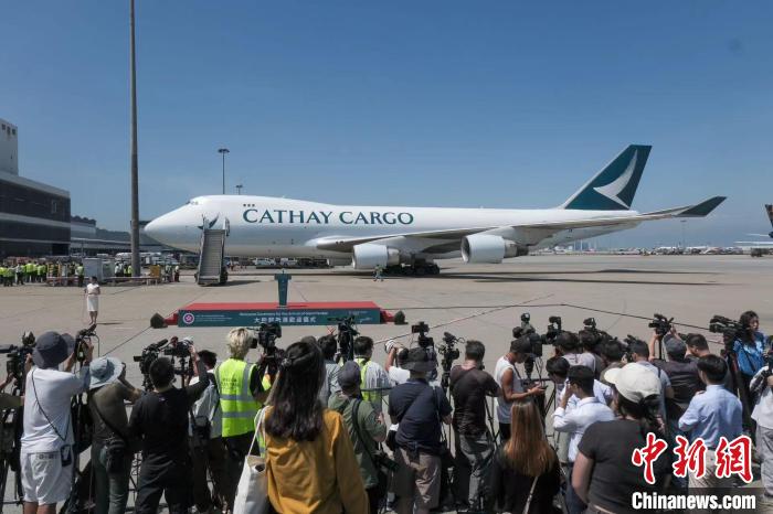 图为载有大熊猫“安安”和“可可”航班抵达香港国际机场。中新网记者 陈永诺 摄
