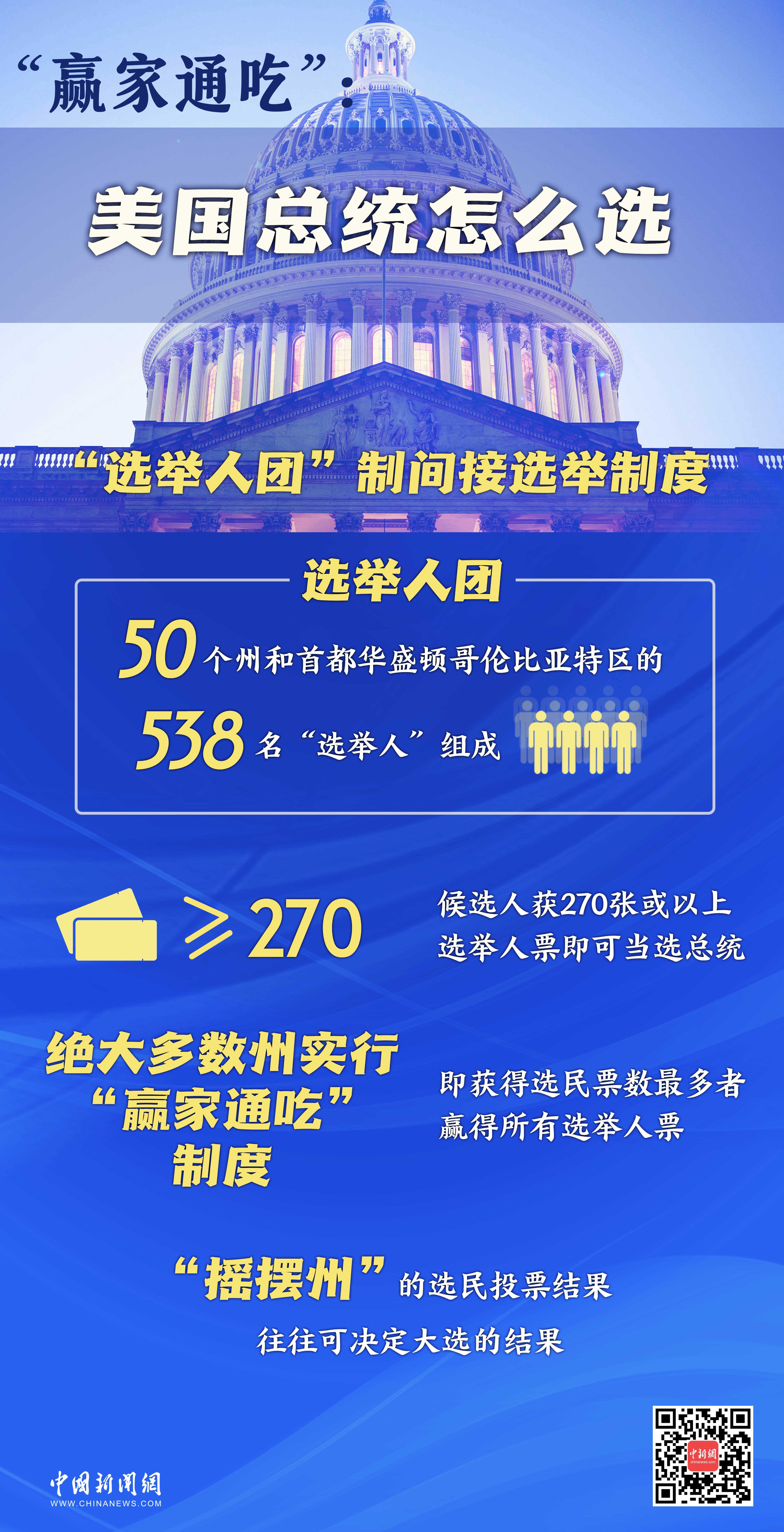 选举人票一共538张,谁能获得270张选举人票,谁就能入主白宫。