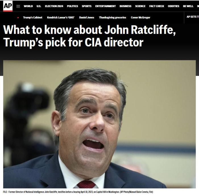 拉特克里夫曾从事律师工作,后进入政坛,担任过市长、联邦检察官等职务,2015年至2020年担任国会众议员。他曾在特朗普的上届政府任国家情报总监。