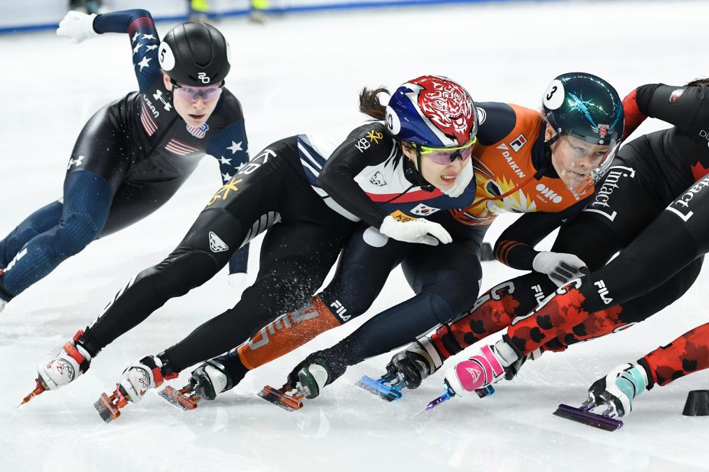 12月7日,荷兰选手桑德拉·贝尔塞伯(左三)和韩国选手崔敏静(左二)在女子1000米决赛中。新华社记者 鞠焕宗 摄