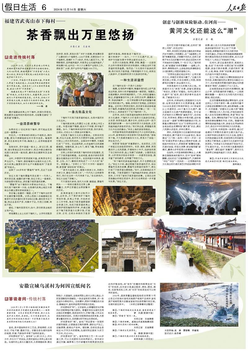 近年来,依托万里茶道的独特优势和村子的历史文化遗存,下梅村大力打造茶文化旅游目的地。从采茶、制茶到品茶,漫步古村,在码头边听一段万里茶道的故事……如今这样的茶文化体验游,正受到越来越多游客的欢迎。“我们来这里,更看重的是文化与生活的融合。”来自上海的游客张晓说。