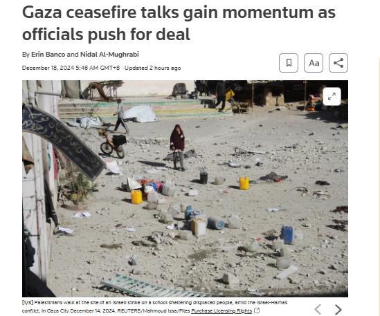 中新网12月18日电 据路透社援引消息人士当地时间27日说法称,随着开罗会谈取得进展,一项旨在实现以色列和巴勒斯坦伊斯兰抵抗运动(哈马斯)在加沙地带停火并释放被关押人员的协议可能在未来几天内达成。