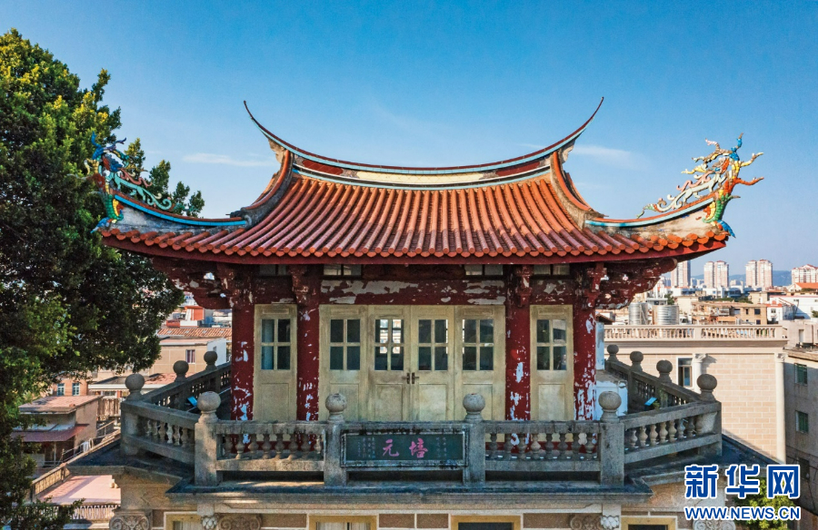 安礼逊图书楼塔楼顶部凌云台为闽南地方传统建筑形式。新华网发(成冬冬 摄)