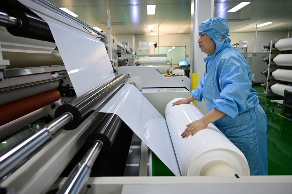 2024年10月24日,工作人员在位于安徽界首的天鸿新材料股份有限公司生产车间里工作。 新华社记者 周牧 摄