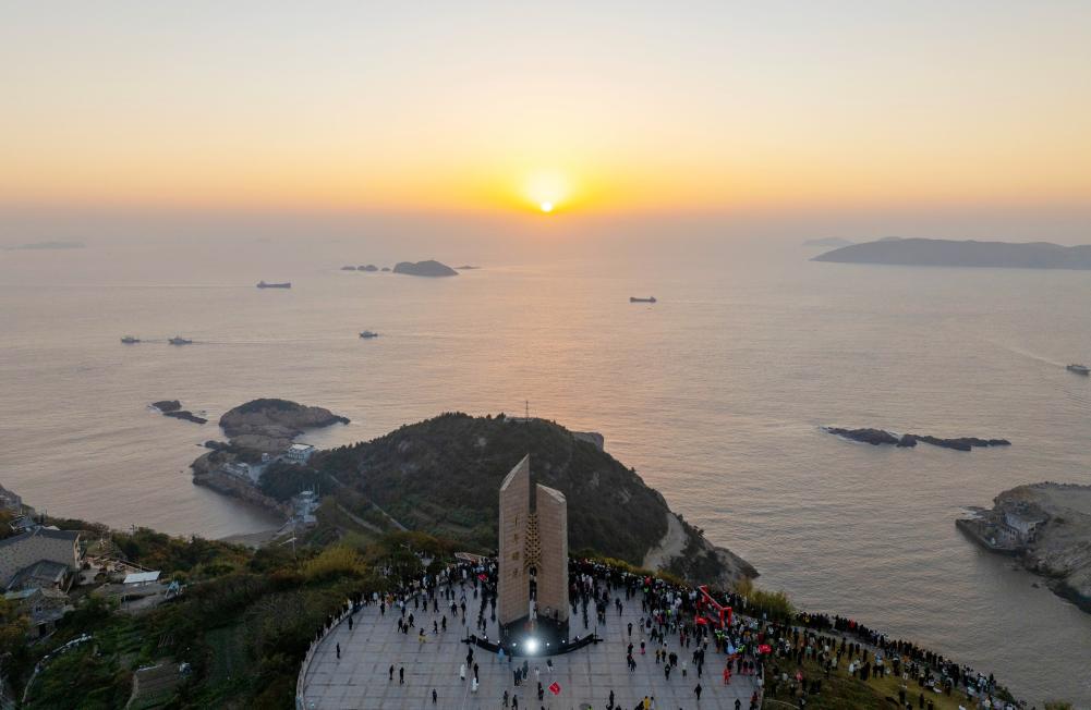 守望在浙江温岭石塘镇千年曙光碑前的人们,翘望、祈愿、欢呼,迎接新年曙光。“追光而来,曙光代表着希望!”来自安徽阜阳的一位游客说。