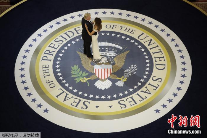 资料图:2017年1月,特朗普与夫人梅拉尼娅·特朗普在就职典礼舞会上。