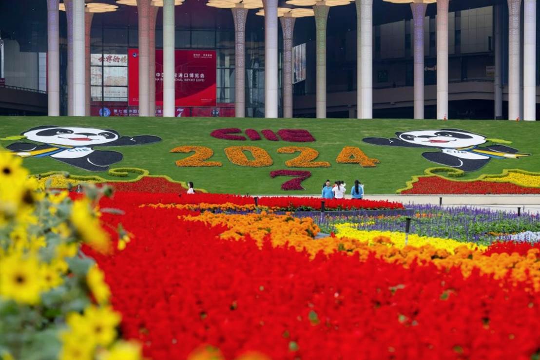 2024年11月4日拍摄的第七届中国国际进口博览会举办场地——国家会展中心(上海)外景。新华社记者 王翔 摄