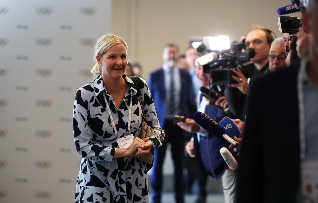 3月19日,国际奥委会执委、国际奥委会主席候选人柯丝蒂·考文垂在会后离场。新华社记者 曹灿 摄