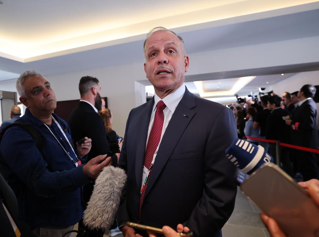3月19日,国际奥委会执委、国际奥委会主席候选人费萨尔·侯赛因接受媒体采访。新华社记者 曹灿 摄