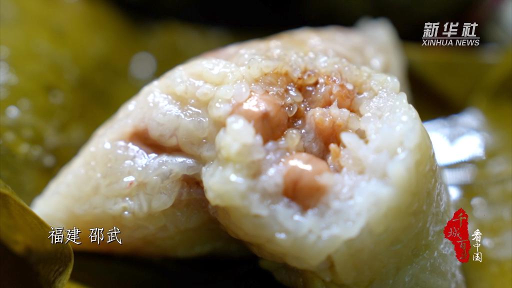在福建邵武,家家户户都有包粽子庆端午的习俗。人们提前准备好粽叶、粽绳、糯米和猪肉。包粽子时取两片粽叶,把粽叶卷成一个圆锥状,往粽叶里装入糯米和肉,再用粽绳缠紧系实,上锅蒸熟即可。热气腾腾的糯米饭混合着粽叶的清香,咬上一口软糯香甜在齿间留香。