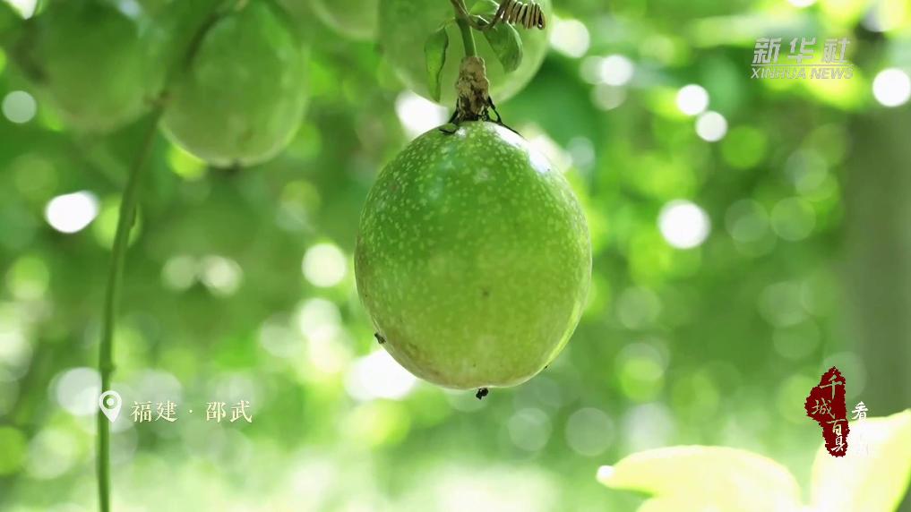 在福建邵武肖家坊镇肖家村黄金百香果种植基地,放眼望去,绿油油的藤蔓下,饱满圆润的百香果挂满枝头,散发出阵阵果香。在百香果高颜值的外表下,是饱满馥郁的内在,不仅自带蜂蜜味,还富含维生素C、维生素B和膳食纤维。