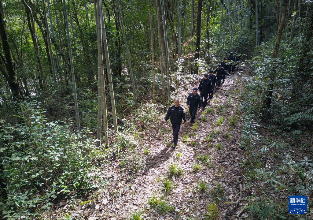 2022年1月19日,武夷山国家公园护林员在巡山(无人机照片)。新华社记者 周义 摄