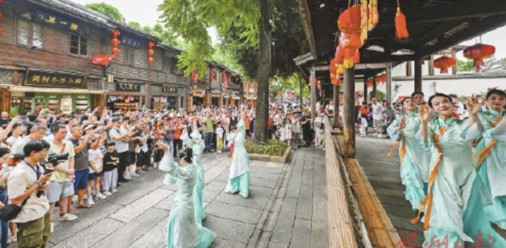 查看三条簪表演亮相三坊七巷,吸引市民游客纷纷驻足拍照。记者 池远摄 在福州,总有一个瞬间让你想留下——或许是三坊七巷里一场不期而遇的畲族歌舞,或许是烟台山老洋房午后的一杯茉莉花茶,又或许是梁厝营地星空下...