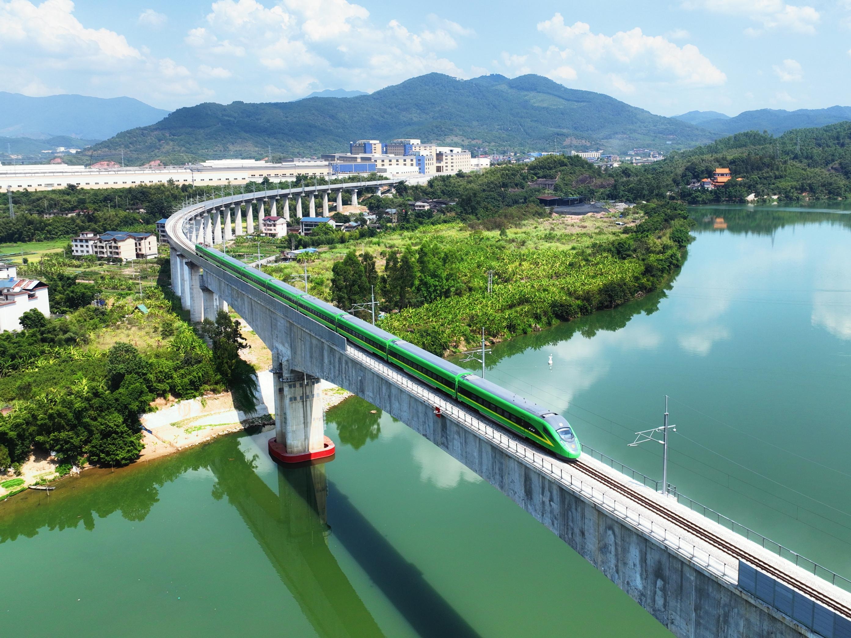 “绿巨人”复兴号列车疾驰在兴泉铁路沙县特大桥上。 曹刚 摄