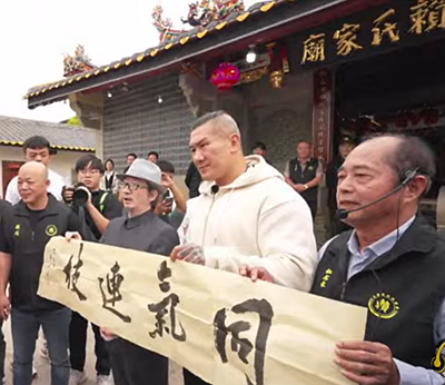 “馆长”3日抵达福建漳州平和县心田村后,受到赖氏宗亲会及民众热烈欢迎。