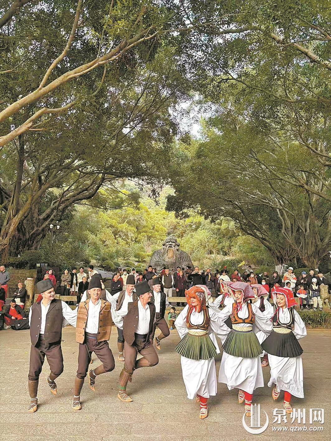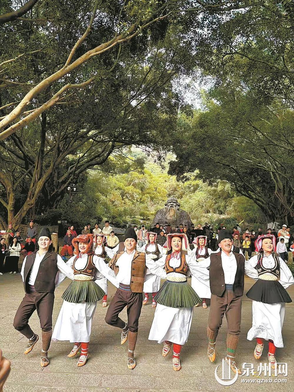 塞尔维亚民族歌舞团在清源山老君岩广场表演