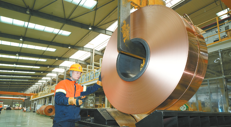 福建紫金铜业冷轧车间内,技术人员紧盯参数,全力保障生产高效精准。该企业正月初三复工复产,快速恢复满负荷生产状态。通讯员 杨国鑫 摄