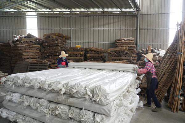 当地竹木加工企业的生产车间,工人们正在忙碌加工竹木。