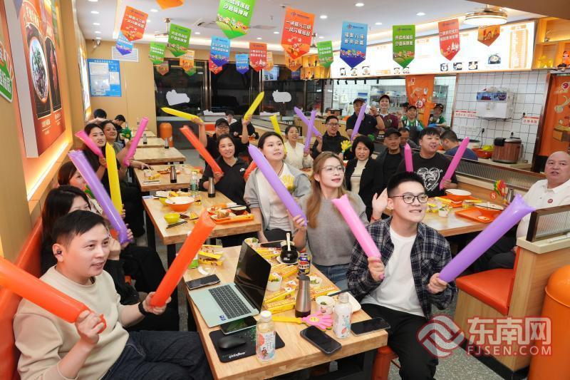 “手机上刷到今晚有闽超,老板在群里说店里会直播,还有新品试吃——炸五彩扁肉、炸牛肉丸、炸豆腐丸。我五点多就来占座了,苏超现在火了,我也想看看福建的‘城超’。”就读于苏州职业技术大学的李士盛说道。