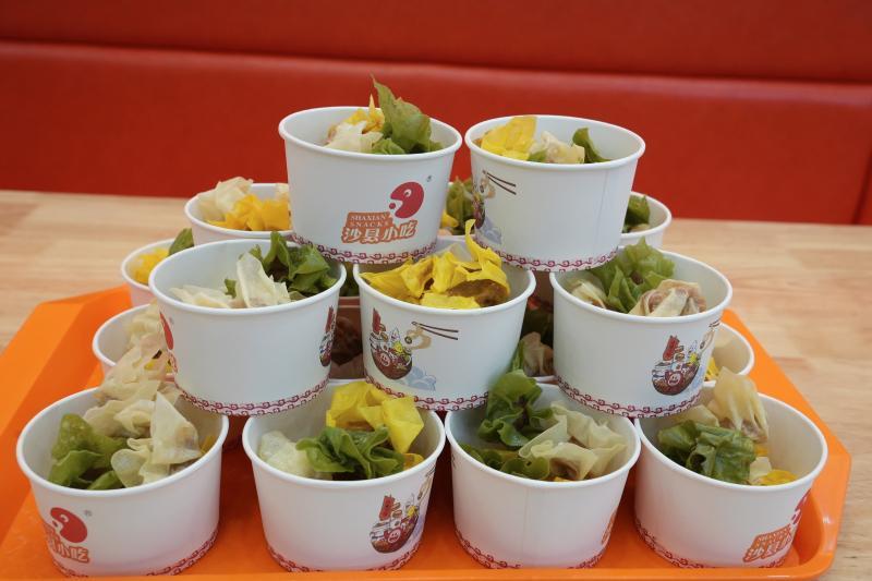 食客们边品尝沙县小吃,边看“闽超”。受访者供图