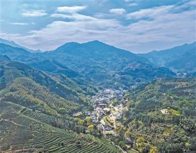 被茶山环绕的坦洋村。